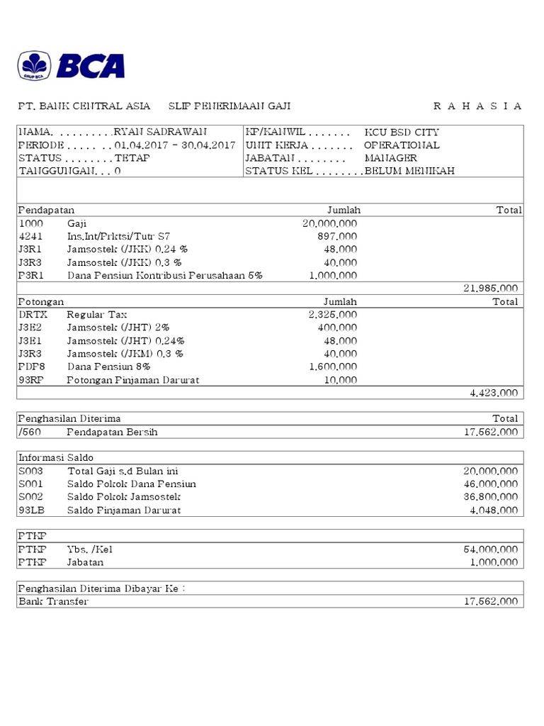 Unknown 15 september 2019 at 00:06. Bca (bank central asia) bca menyediakan banyak produk kartu kredit yang tidak hanya cocok untuk para pengguna pertama tapi juga para anak muda yang baru berpenghasilan. Pengertian slip penarikan dan slip penyetoran bila anda seorang nasabah di suatu bank saat akan melakukan transaksi di teller anda akan ditanyakan mengenai keperluan andaada dua jenis kegiatan yang bisa. Payroll bca,komponen gaji karyawan,payroll gaji,contoh surat pernyataan salah transfer,slip setoran bank mandiri excel,surat pernyataan salah transfer,contoh rekening koran bank bca,surat permohonan cetak rekening koran,contoh surat kesalahan transfer,contoh penulisan cek bca,cara print rekening koran bca,surat permohonan transfer rekening. Perlu kalian ketahui, untuk transaksi tarik tunai bank bca lewat teller, kalian harus memenuhi persyaratan berikut :